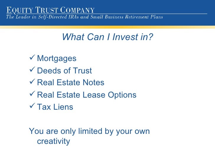 Self Directed IRA Investments. A true self directed IRA can invest in a myriad of allowable asset classes outside of the normal traditional investments. Some of the allowable alternative investments are but not limited to: Real Estate – residential and commercial – condos, mobile homes foreign; Raw Land; Trust Deeds/Mortgage and Mortgage Pools ... Fetch Full Source