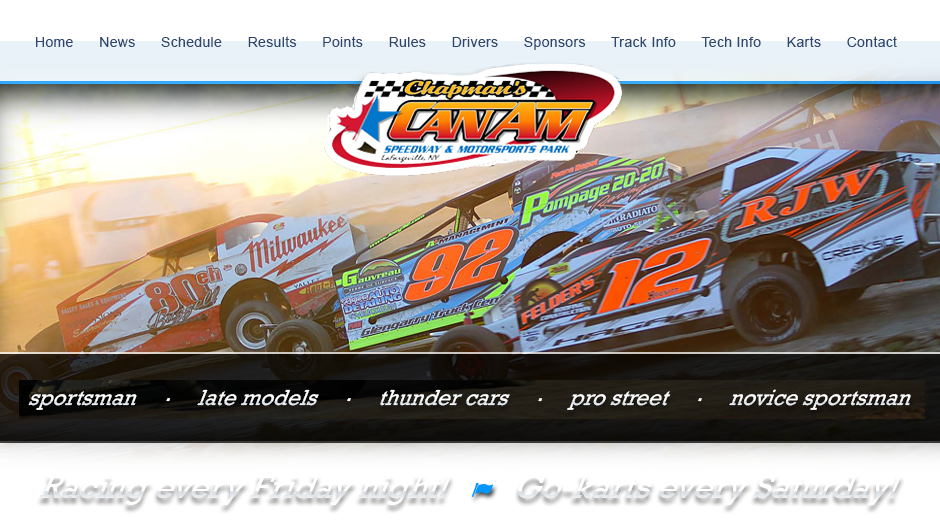 Lernerville Speedway. RainedOut | know before you go. Content Chapman's Can Am Speedway & Motorsports Park. 1/2 Mile DIRT track located in Lafargeville, New York. We race every Saturday night from April to September. Go Kart racing on Friday nights and race car racing on Saturday nights. ... Fetch Content