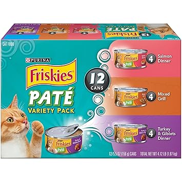 Description. Give your pal a bowlful of kitty-approved flavor and nutrition with the Friskies Classic Pate Variety Pack Canned Cat Food. This variety pack features a tasty assortment of pates that are packed with everything your cat needs to stay looking and feeling his best, like protein, antioxidants and healthy omegas. ... Access Full Source